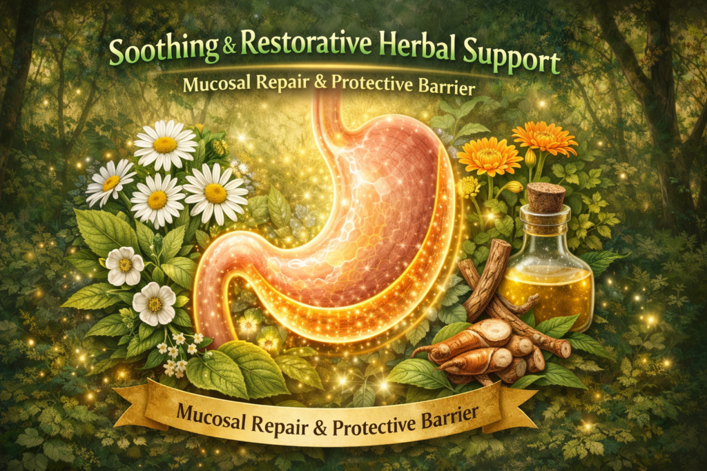 Step D. Our final step uses our soothing and restorative herbal compounds, formulated to calm inflammation, support mucosal repair, and help restore the stomach’s natural protective barrier.